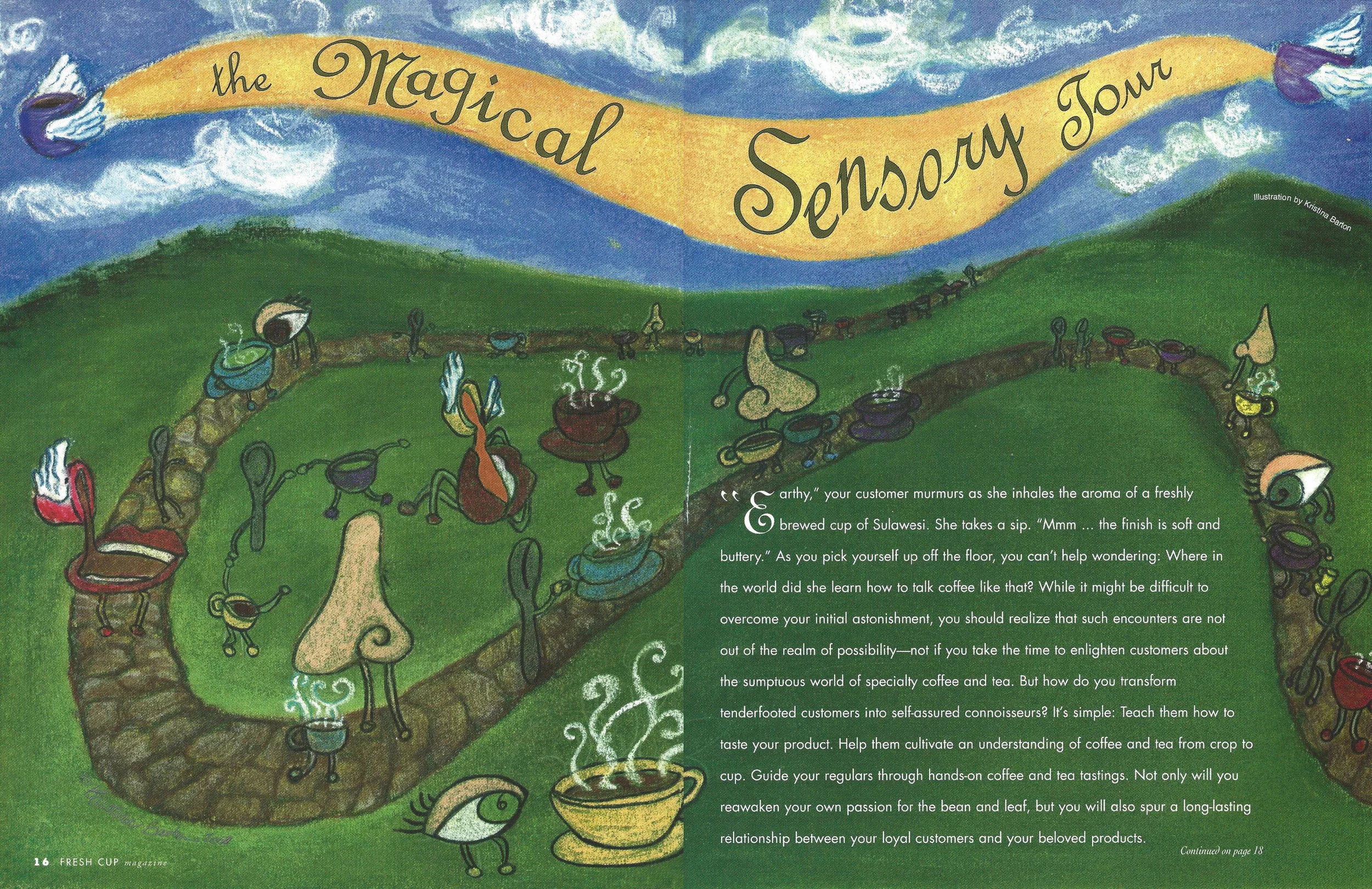 Client project: Fresh Cup Magazine asked us to create an illustration for The Magical Sensory Tour a story about using all of your senses when enjoying a delicious beverage.
